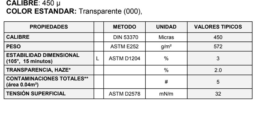**El material puede presentar contaminaciones cuyo origen obedece a la naturaleza de la resina y al proceso de obtención. Pueden presentarse puntos amarillos a cafés que corresponden a diminutas partículas de la resina degradada.