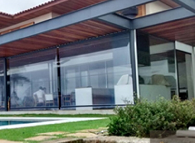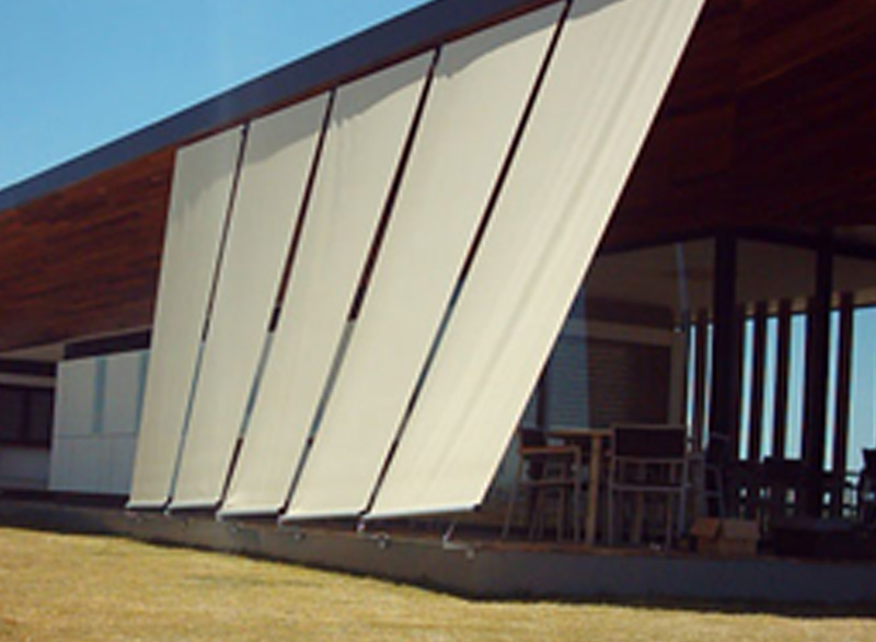 Toldo vertical enrollable con lingas guía.